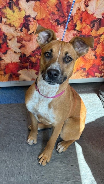 The shelter named me Sharon. I am a 1 year 1 month old female tan & white Queensland Heeler Pit Bull Terrier. I have been at the shelter since Friday, October 31, 2025. Must provide proof of home ownership or landlord approval at the time of adoption.