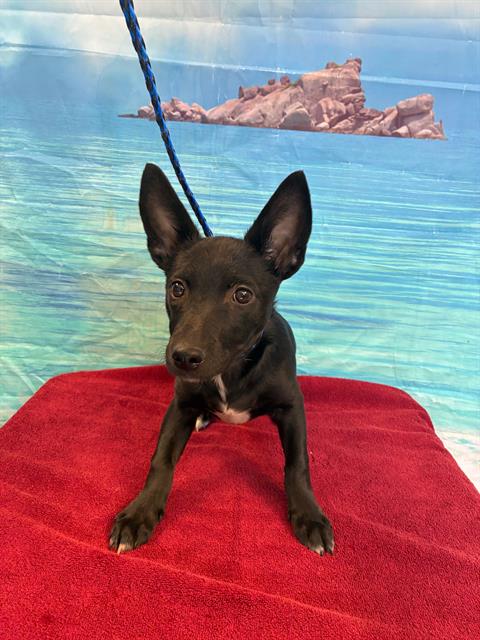 The shelter named me Lily Munster. I am a 5 month old female tricolor Siberian Husky Mix. I have been at the shelter since Tuesday, October 14, 2025. Must provide proof of home ownership or landlord approval at the time of adoption.