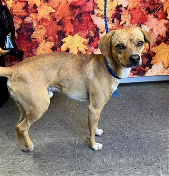 The shelter named me Ricky Bobby. I am a 2 year old male tan & white Pug Mix. I have been at the shelter since Tuesday, October 28, 2025. Must provide proof of home ownership or landlord approval at the time of adoption.