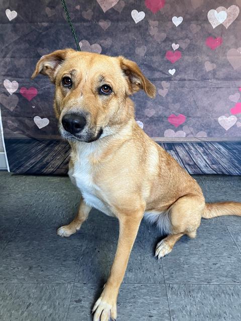The shelter named me Drusilla. I am a 3 year old female tan & white Australian Cattle Dog Mix. I have been at the shelter since Thursday, February 19, 2026. Must provide proof of home ownership or landlord approval at the time of adoption.